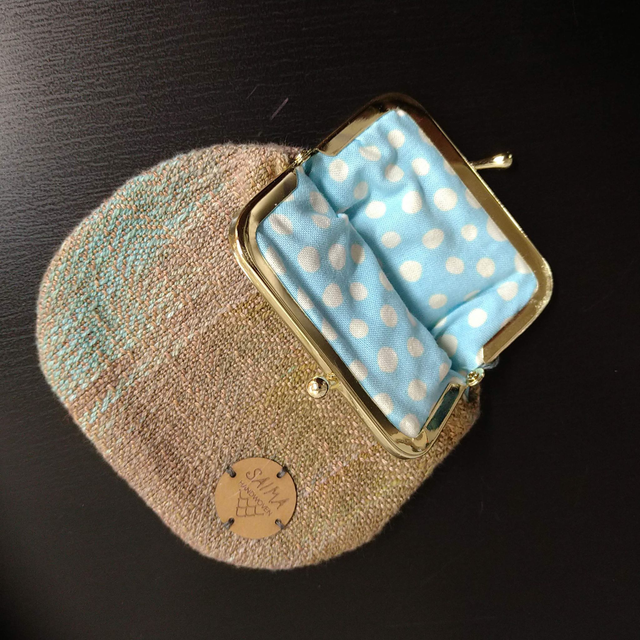 Kukkaron päällinen on valmistettu käsinvärjätystä ja -kudotusta kantoliinakankaasta. Jokaisessa kukkarossa on yksilölliset värit ja materiaalit. Tuotteen voi pestä käsin viileässä vedessä. Kuivaa muotoon kuositeltuna. Ei saa liottaa.