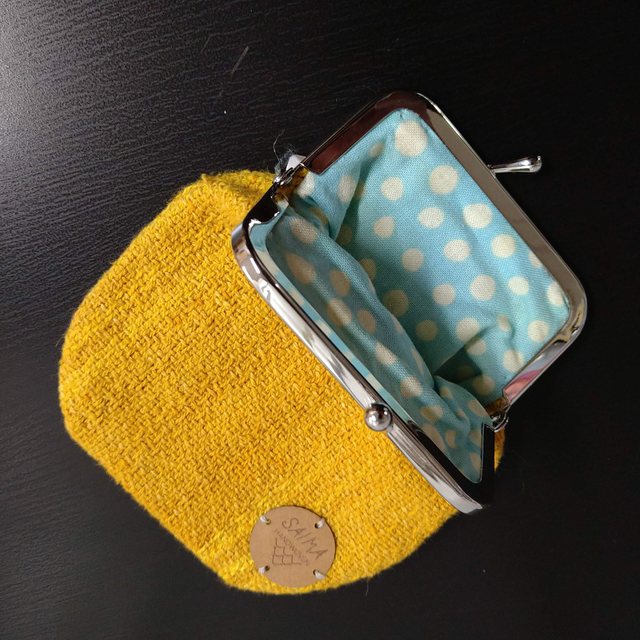 Kukkaron päällinen on valmistettu käsinvärjätystä ja -kudotusta kantoliinakankaasta. Jokaisessa kukkarossa on yksilölliset värit ja materiaalit. Tuotteen voi pestä käsin viileässä vedessä. Kuivaa muotoon kuositeltuna. Ei saa liottaa.