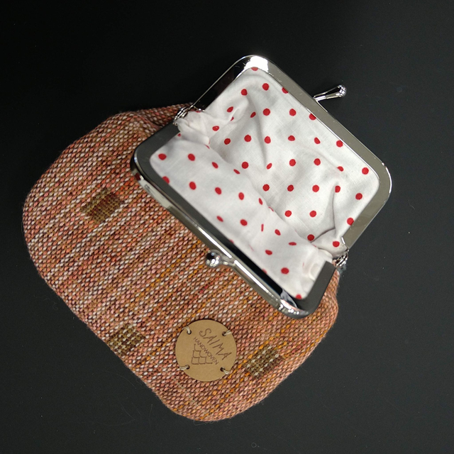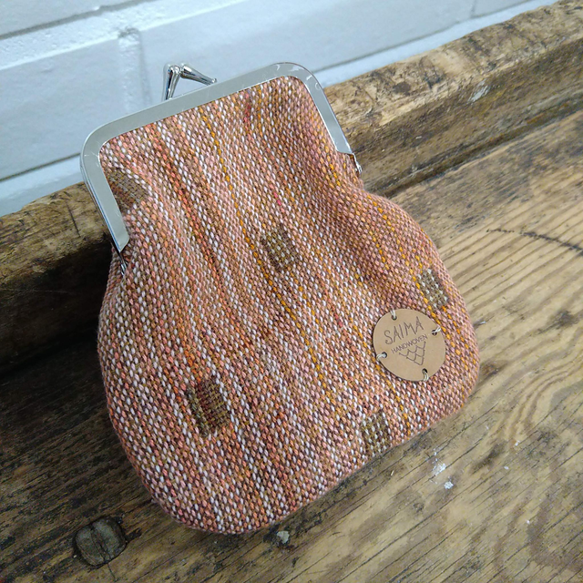 Kukkaron päällinen on valmistettu käsinvärjätystä ja -kudotusta kantoliinakankaasta. Jokaisessa kukkarossa on yksilölliset värit ja materiaalit. Tuotteen voi pestä käsin viileässä vedessä. Kuivaa muotoon kuositeltuna. Ei saa liottaa.