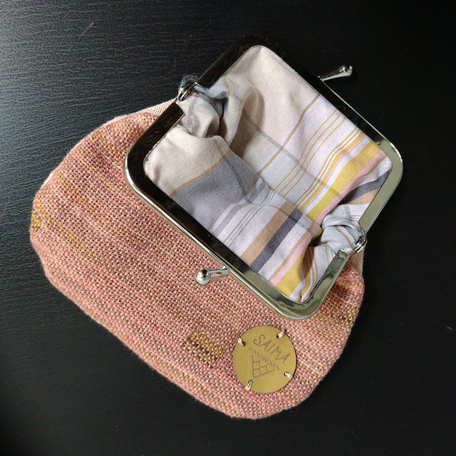 Kukkaron päällinen on valmistettu käsinvärjätystä ja -kudotusta kantoliinakankaasta. Jokaisessa kukkarossa on yksilölliset värit ja materiaalit. Tuotteen voi pestä käsin viileässä vedessä. Kuivaa muotoon kuositeltuna. Ei saa liottaa.