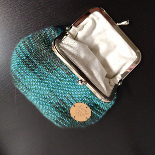 Kukkaron päällinen on valmistettu käsinvärjätystä ja -kudotusta kantoliinakankaasta. Jokaisessa kukkarossa on yksilölliset värit ja materiaalit. Tuotteen voi pestä käsin viileässä vedessä. Kuivaa muotoon kuositeltuna. Ei saa liottaa.