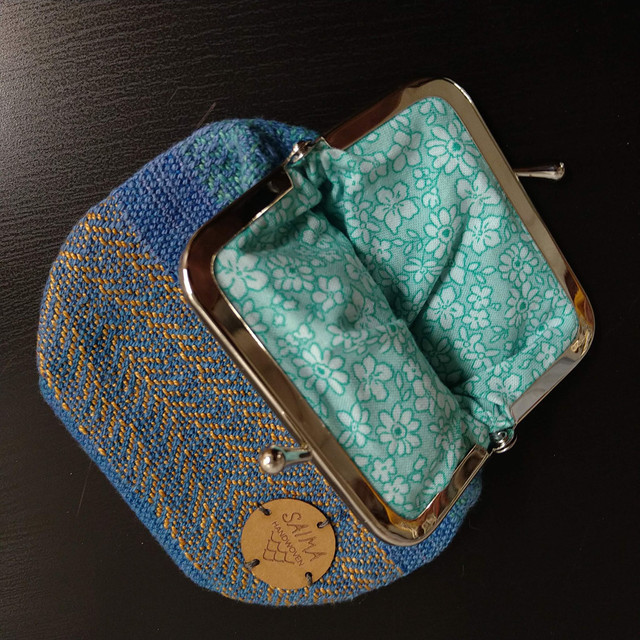 Kukkaron päällinen on valmistettu käsinvärjätystä ja -kudotusta kantoliinakankaasta. Jokaisessa kukkarossa on yksilölliset värit ja materiaalit. Tuotteen voi pestä käsin viileässä vedessä. Kuivaa muotoon kuositeltuna. Ei saa liottaa.