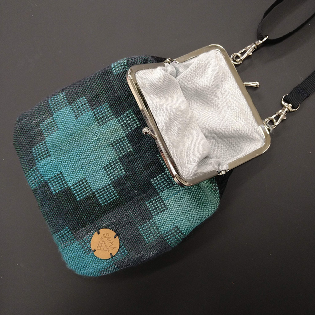 Laukku on valmistettu käsinvärjätystä ja -kudotusta kantoliinakankaasta. Jokaisessa laukussa on yksilölliset värit ja materiaalit. Laukussa on 15 mm leveä irroitettava musta nylonhihna. Hihnan saa säädettyä noin pituuksiin 85-165 cm. Tuotteen voi pestä käsin viileässä vedessä. Kuivaa muotoon kuositeltuna. Ei saa liottaa.