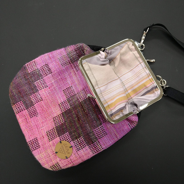 Laukku on valmistettu käsinvärjätystä ja -kudotusta kantoliinakankaasta. Jokaisessa laukussa on yksilölliset värit ja materiaalit. Laukussa on 15 mm leveä irroitettava musta nylonhihna. Hihnan saa säädettyä noin pituuksiin 85-165 cm. Tuotteen voi pestä käsin viileässä vedessä. Kuivaa muotoon kuositeltuna. Ei saa liottaa.